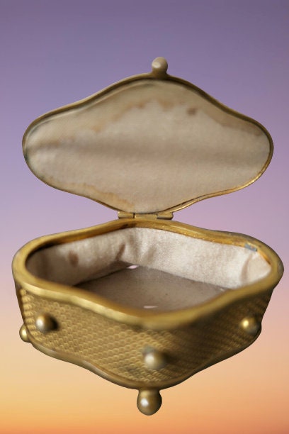 Pieter Dura Casket Box. Elaborate inlaid cover lid. Lined interior. Bronze decorated box set on footed base. Measures 7,5 cm hauteur 4 cm.