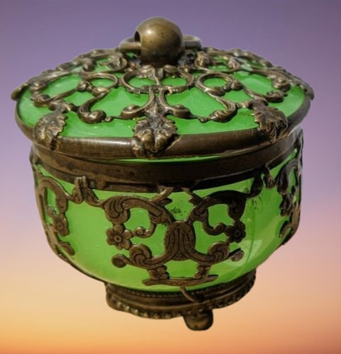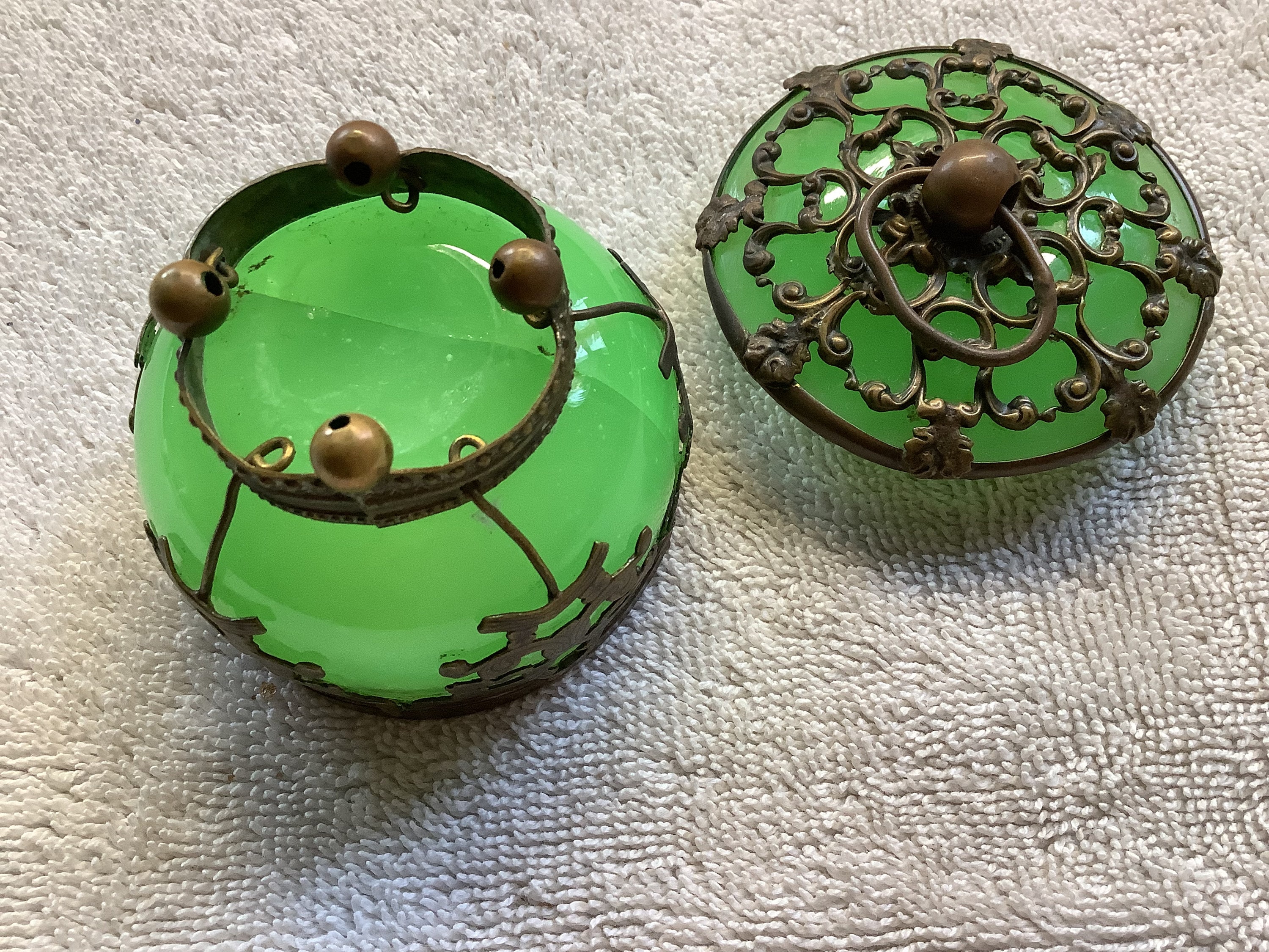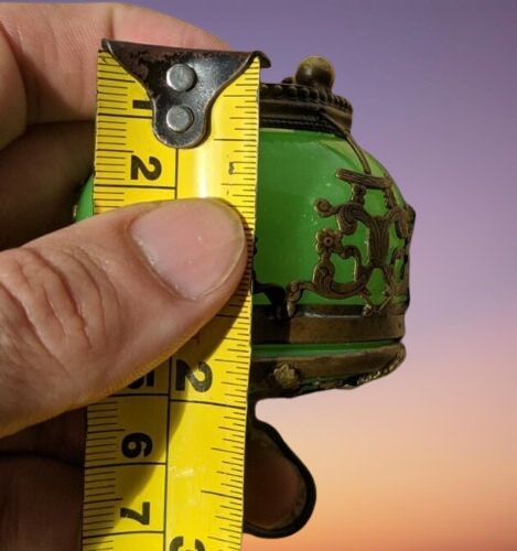 French Bronze Green Opaline Casket Box. Minor Chip on Opaline ( pic 4) and base crack shown in pictures.(please review).