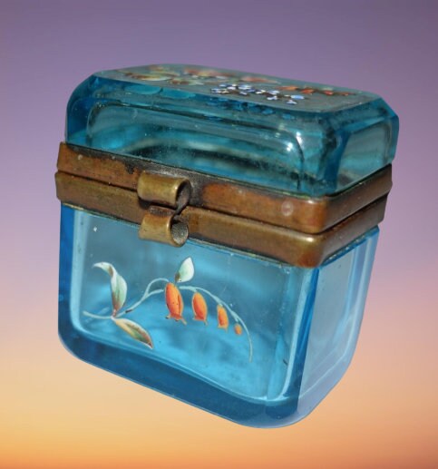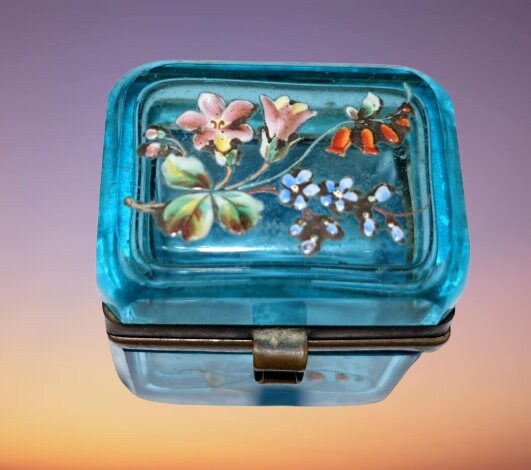 Moser enamel glass sugar casket box. measures 42 x 37 x 44 mm