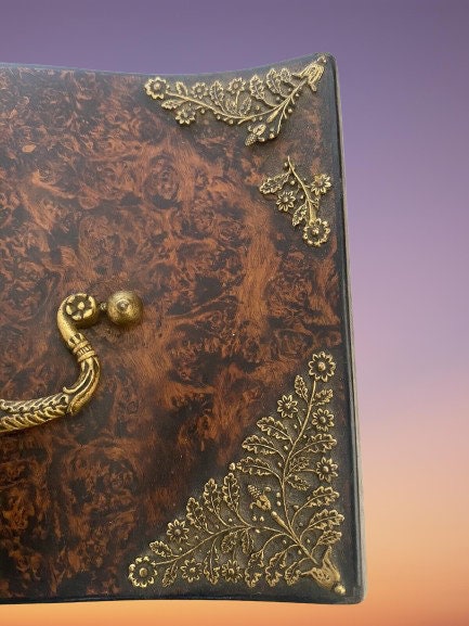 INSIDE THE BODY OF THE BOX IS LIVELY VELVET WITH RED STRIPES WITH THE MOST BEAUTIFUL EFFECT.