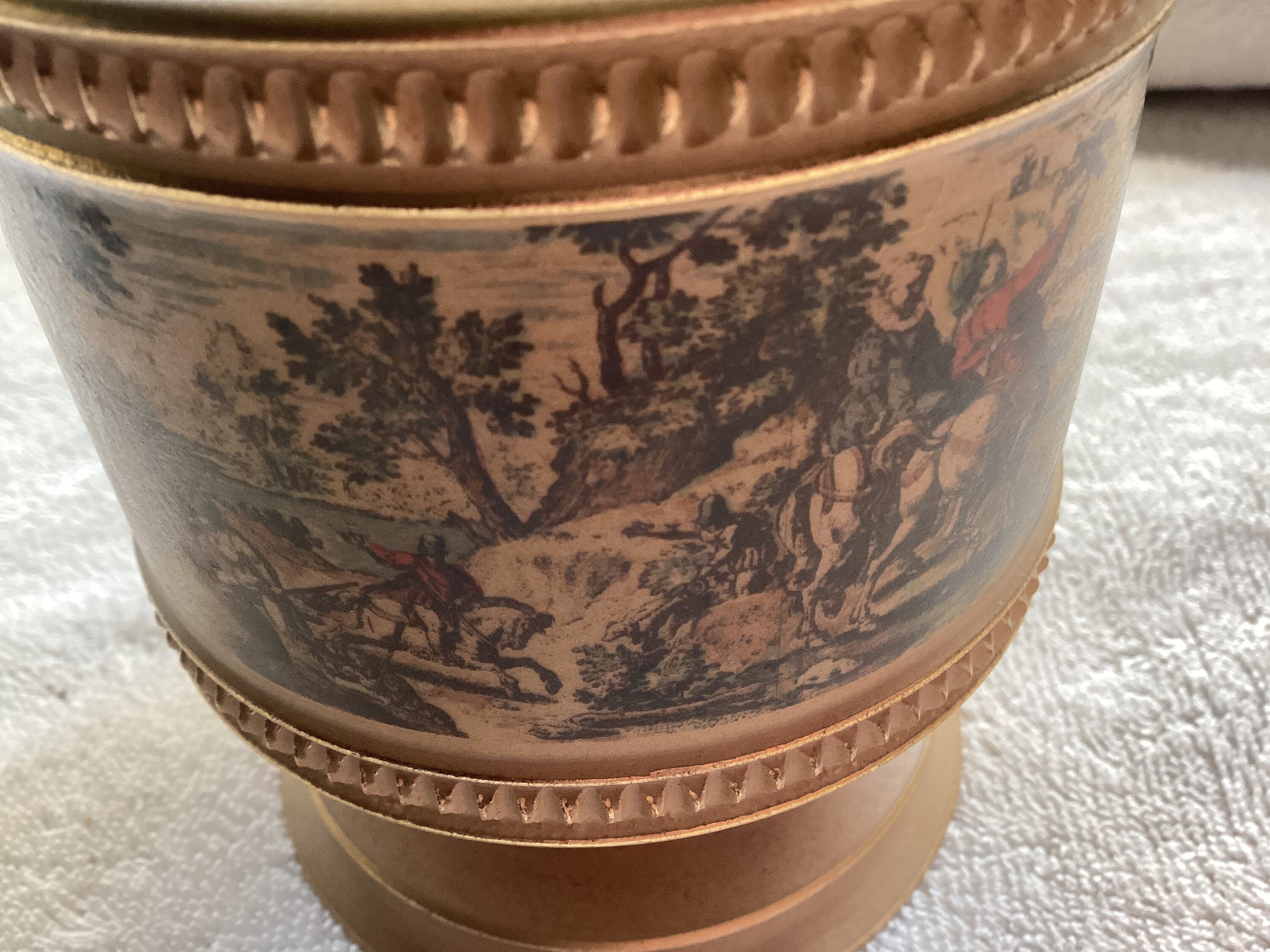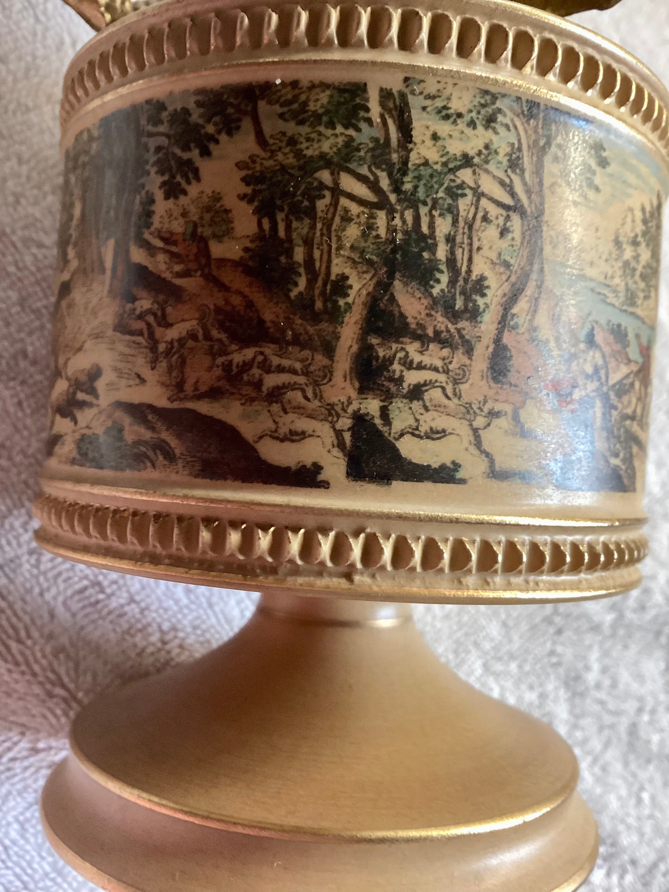 Italian oil lamp. DaCoro Grotto Italy Florintine # 60. Decorated oil cylinder features men at war.. base clearly marked. Elaborated triple sides hold while share and tube..