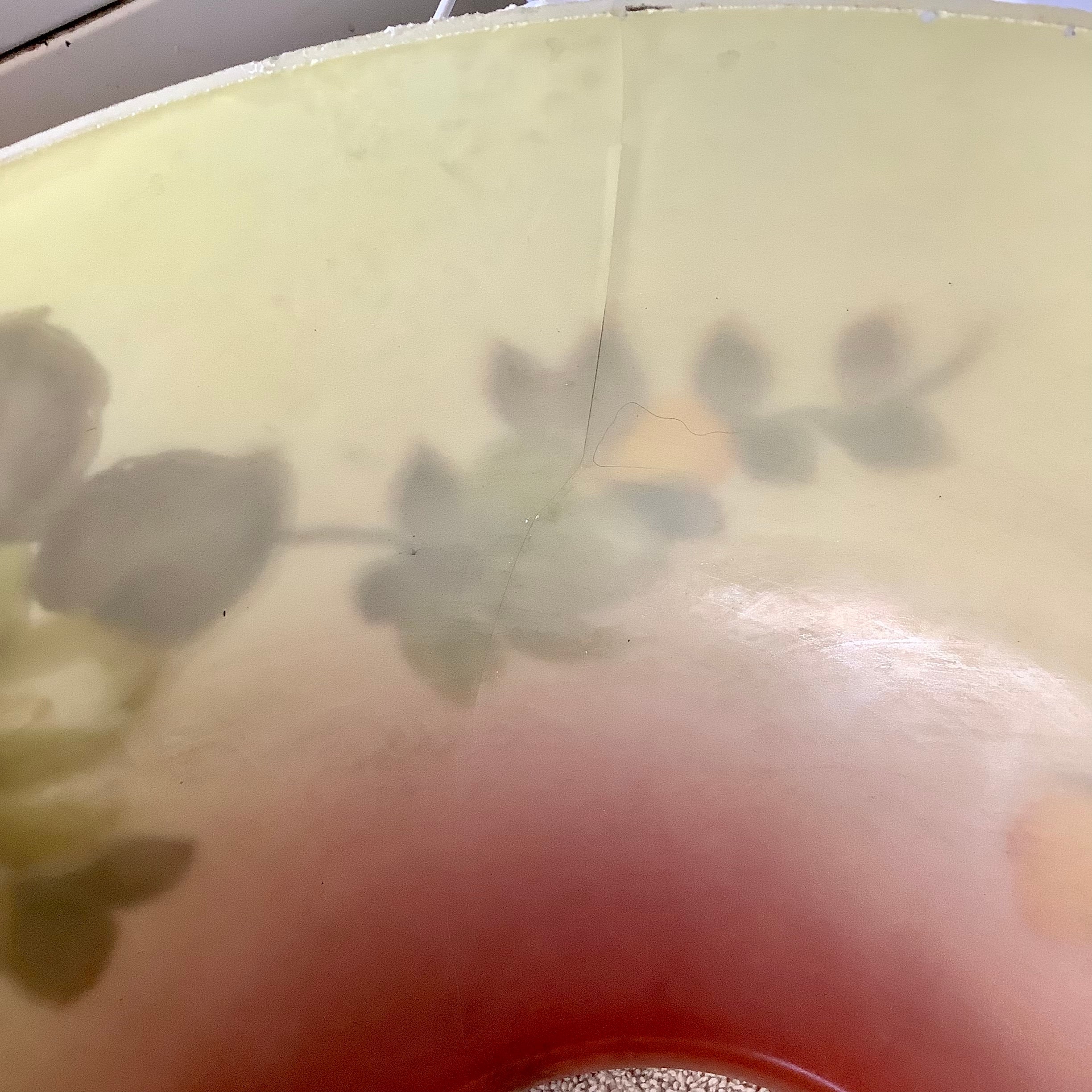 Victorian Hanging Oil Lamp Shade. stunning floral detail with raised enameling. Sadly cracked but intact.