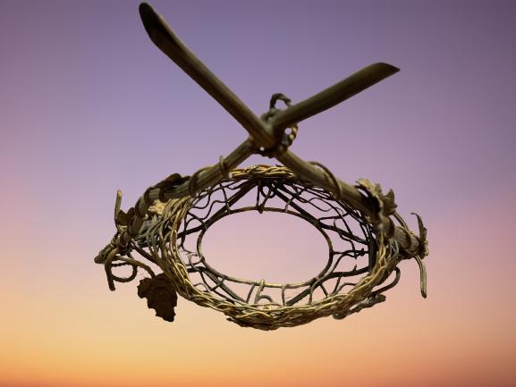 French Palais Royal Egg Basket stand. Once held likely an opal one egg. Floral decor. Twisted basket. Teepee style handle.