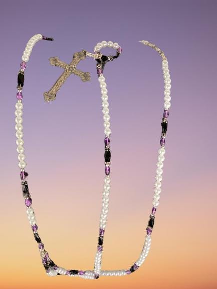 Three piece set. Originally designed to accompany another gown listed. Includes bag. Waist belt with vpcross. And necklace in amethyst.