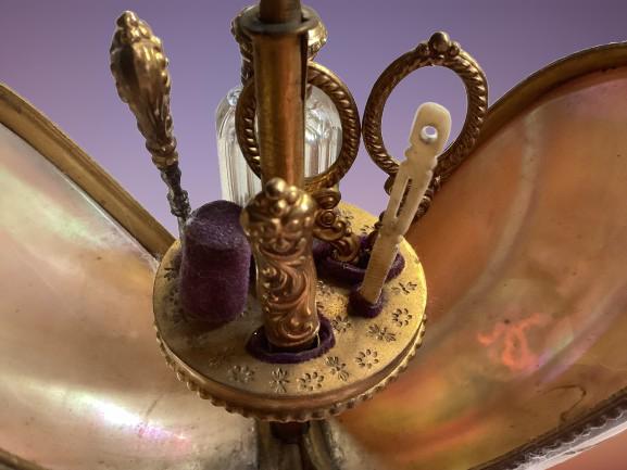 French Palais Royal Mother of Pearl Mop Sewing Egg Casket Box Etui