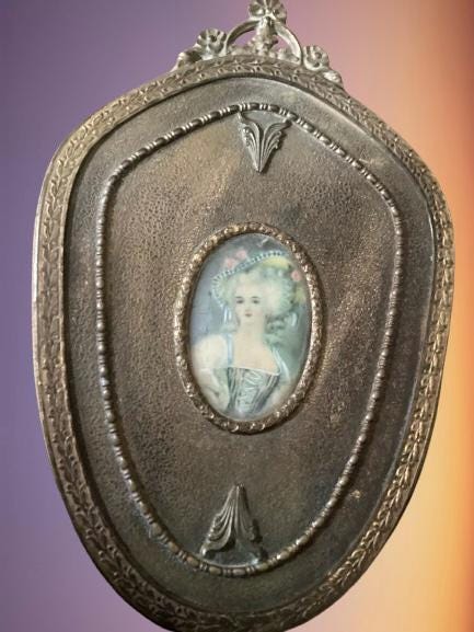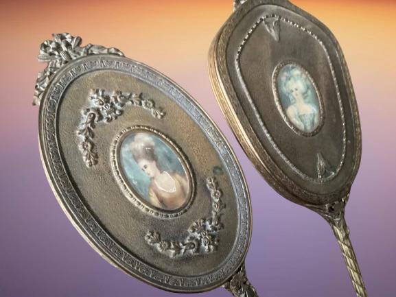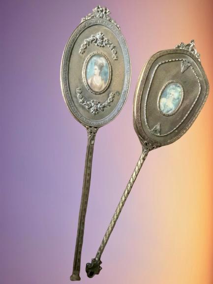 Bronze miniature portrait hand mirror. Mirror sold is in the first photo. Other sold in seperate listing.