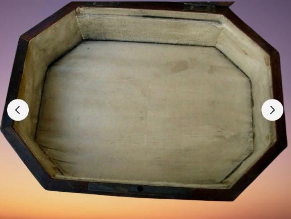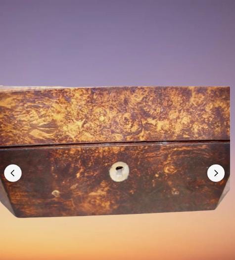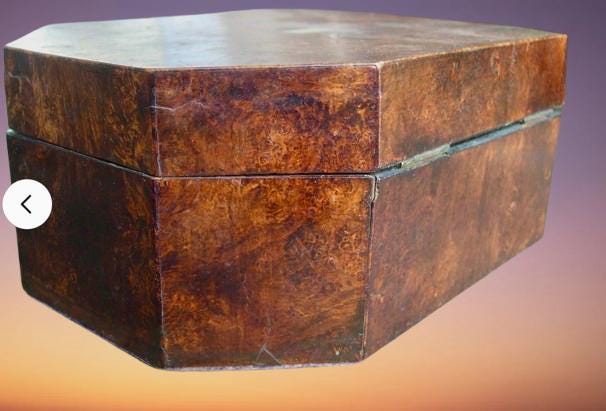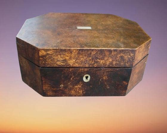 Burl wood octagonal Palais Royal Sewing Casket Box..