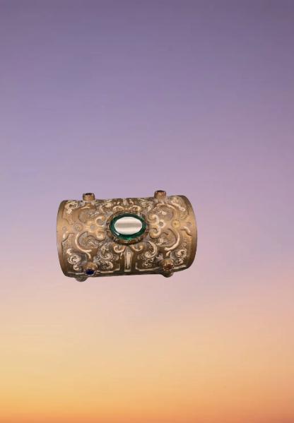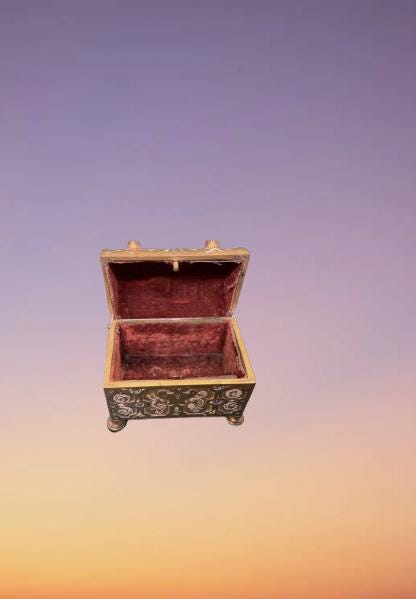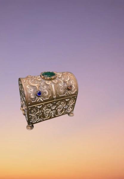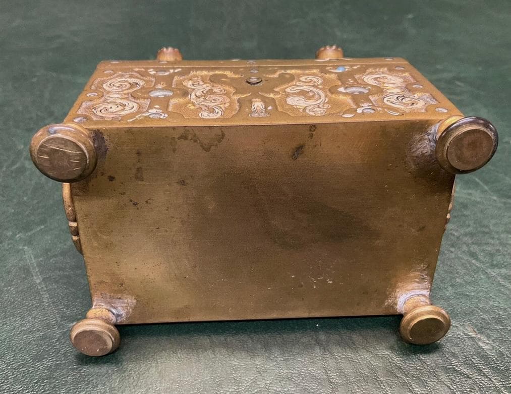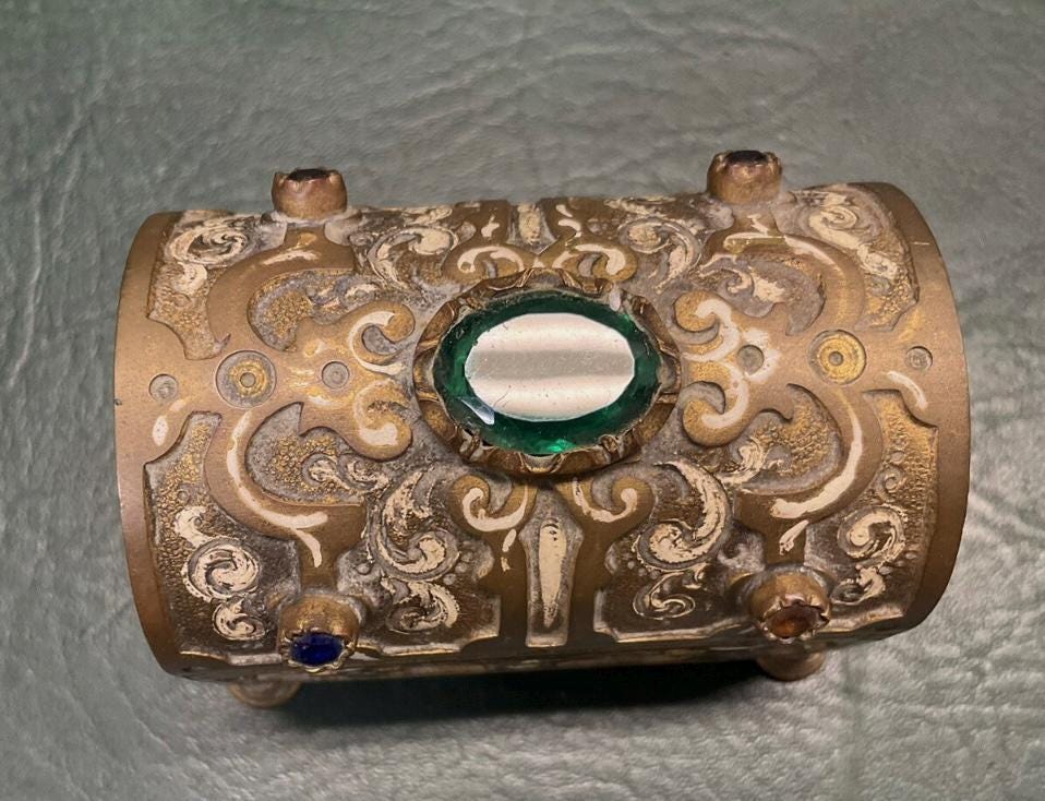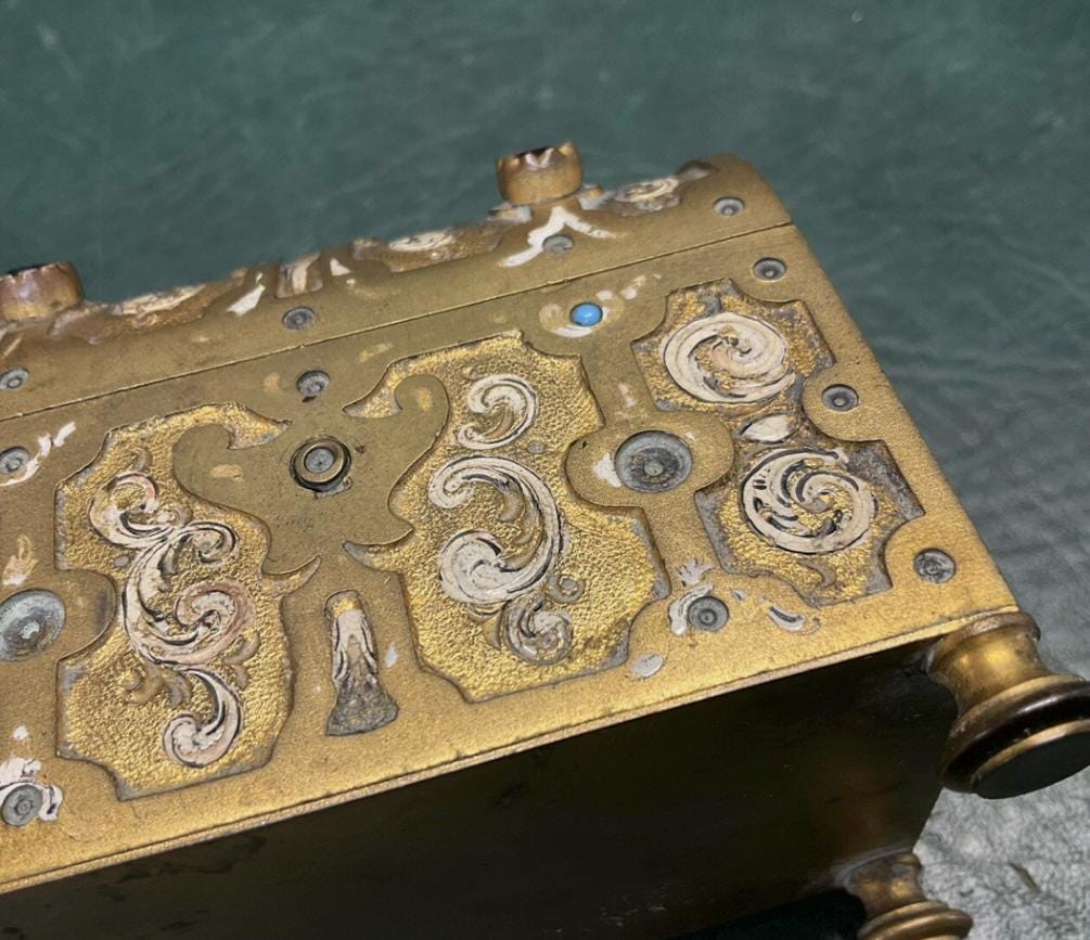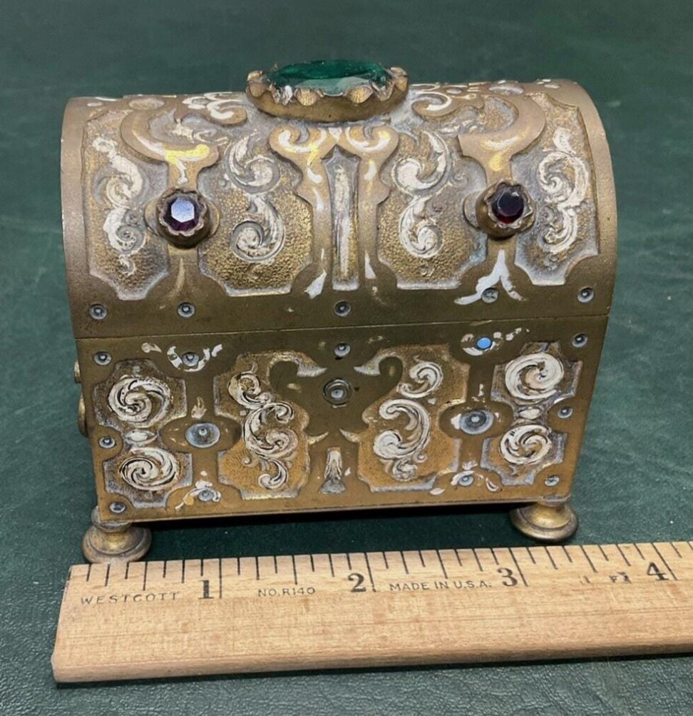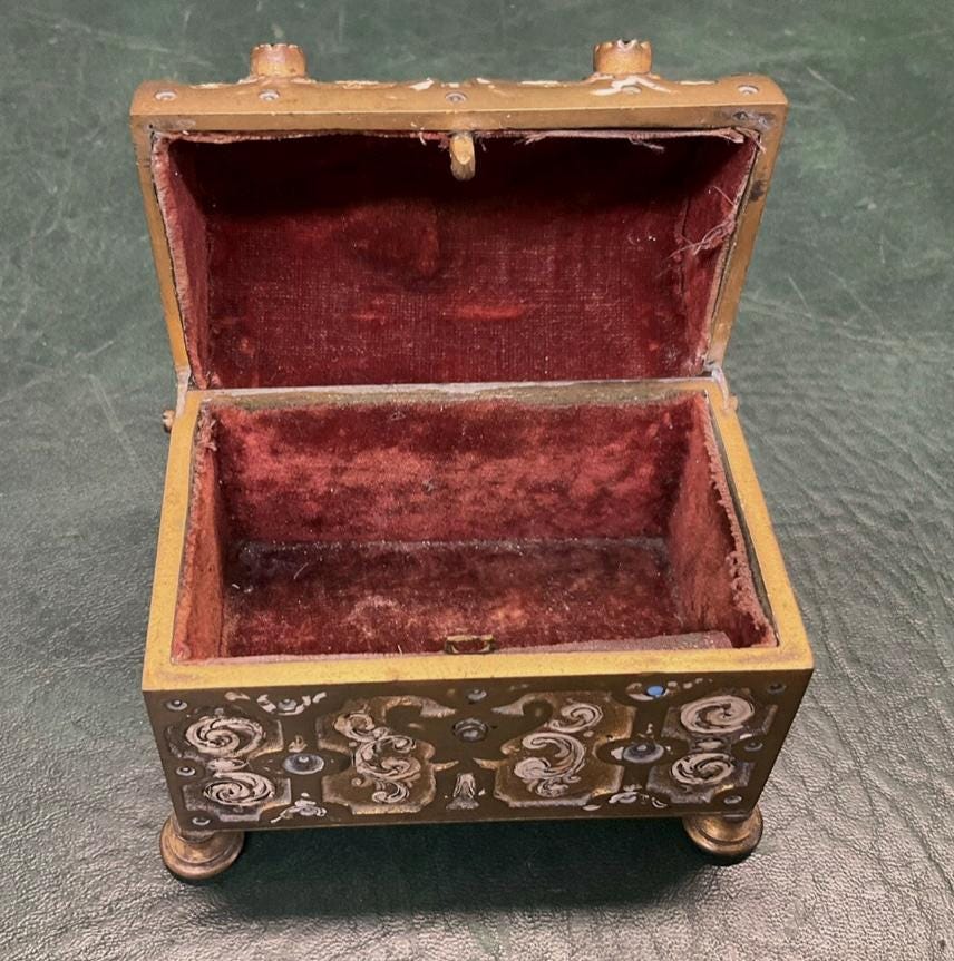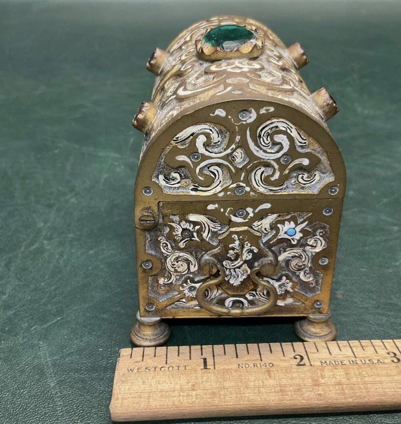 Austro-Hungarian jeweled enamel casket box. It has few gems on the lid .