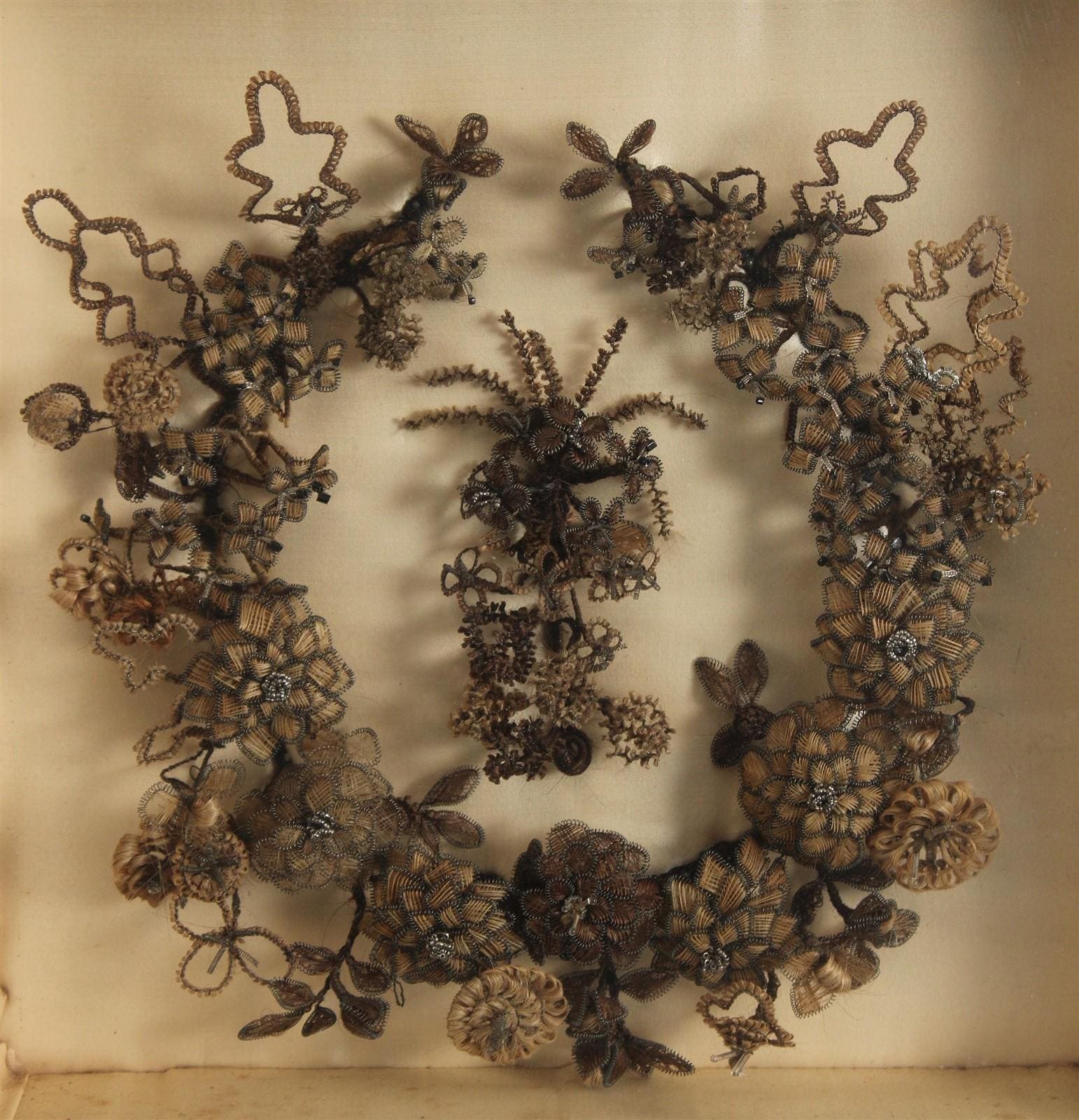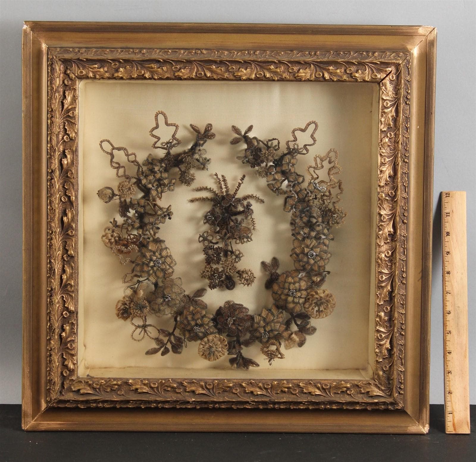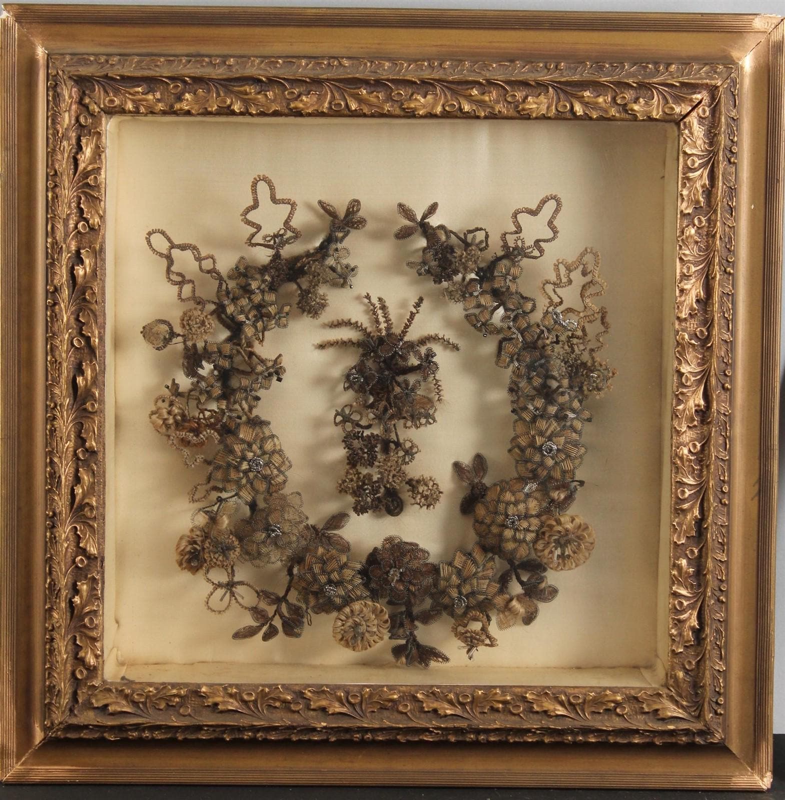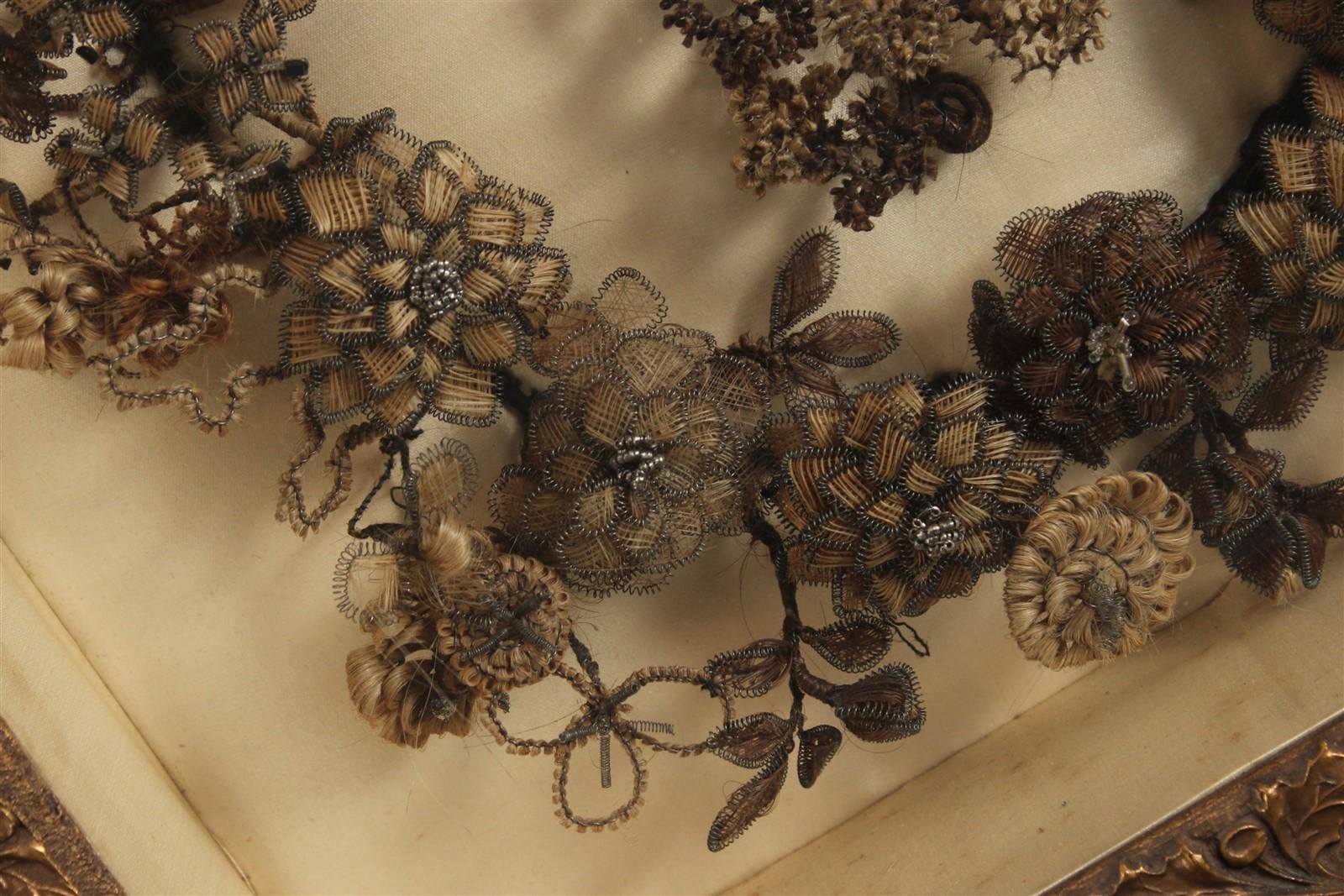 Mourning hair set in 20 “ square frame.