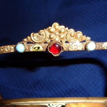 Austro Hungarian jeweled stand. Cabochon gemstones ,(all intact), decor stand with whitewash enamel detailing, classic in many