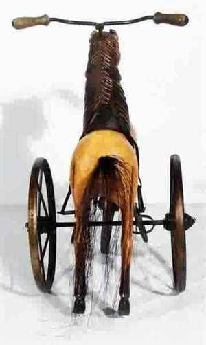 Velocipede Tricycle. The horse is made of solid hand carved wood,with all cast iron accessories. it stands roughly 16" long and 16" tall and is in full working condition. It has deep glossy glass eyes, and a thiVelocipede Tricycle. The horse is made of solid hand carved wood,with all cast iron accessories. it stands roughly 16" long and 16" tall and is in full working condition. It has deep glossy glass eyes, and a thick detailed saddle. The stirrups are complete, and fully intact on both sides. The horse hair tail is so brittle from age that it’s easily falling free with the slightesr amount of handling. There is an almost unnoticble spot on the left peddle where the previous owner repaired a crack at one time. There are a couple cracks to the body. One by the top of the front leg, and one by the top of the back right leg. This would look great in so many different collections, and with small size can fit almost anywhere,yet still make a bold statement in any room.,or store.ck detailed saddle. The stirrups are complete, and fully intact on both sides. The horse hair tail is so brittle from age that its easily falling free with the slightesr amount of handling. There is an almost unnoticble spot on the left peddle where the previous owner repaired a crack at one time. There are a couple cracks to the body. One by the top of the front leg, and one by the top of the back right leg. This would look great in so many different collections, and with small size can fit almost anywhere,yet still make a bold statement in any room.,or store.he hVelocipede Tricycle. The horse is made of solid hand carved wood,with all cast iron accessories. it stands roughly 16" long and 16" tall and is in full working condition. It has deep glossy glass eyes, and a thick detailed saddle. The stirrups are complete, and fully intact on both sides. The horse hair tail is so brittle from age that its easily falling free with the slightesr amount of handling. There is an almost unnoticble spot on the left peddle where the previous owner repaired a crack at one time. There are a couple cracks to the body. One by the top of the front leg, and one by the top of the back right leg. This would look great in so many different collections, and with small size can fit almost anywhere,yet still make a bold statement in any room.,or store.orse is madeThe horse is made of solid hand carved wood, with all cast iron accessories. It stands roughly 16" Tall x 16" Long, and is in fully working condition. It has deep, glossVelocipede Tricycle. The horse is made of solid hand carved wood,with all cast iron accessories. it stands roughly 16" long and 16" tall and is in full working condition. It has deep glossy glass eyes, and a thick detailed saddle. The stirrups are complete, and fully intact on both sides. The horse hair tail is so brittle from age that its easily falling free with the slightesr amount of handling. There is an almost unnoticble spot on the left peddle where the previous owner repaired a crack at one time. There are a couple cracks to the body. One by the top of the front leg, and one by the top of the back right leg. This would look great in so many different collections, and with small size can fit almost anywhere,yet still make a bold statement in any room.,or store.y Velocipede Tricycle. The horse is made of solid hand carved wood,with all cast iron accessories. it stands roughly 16" long and 16" tall and is in full working condition. It has deep glossy glass eyes, and a thick detailed saddle. The stirrups are complete, and fully intact on both sides. The horse hair tail is so brittle from age that its easily falling free with the slightesr amount of handling. There is an almost unnoticble spot on the left peddle where the previous owner repaired a crack at one time. There are a couple cracks to the body. One by the top of the front leg, and one by the top of the back right leg. This would look great in so many different collections, and with small size can fit almost anywhere,yet still make a bold statement in any room.,or store.glass eyes, and a thick detailed saddle. The stirrups are complete, and fully intact on both sides. The horse hair tail is so brittle from age that it's basically falling off with the slightest amount of handling. There's a couple small cracks to the body. One by the top of the front right leg, and one by the top of the back right leg. There's an almost unnoticable spot on the left peddle where the previous owner repaired a crack at one time. This would look great in so many different types of collections, and with the small size, can fit almost anywhere, yet still make a bold statement in any room, or store. A perfect addition to any collection. Please ask if you have of solid hand carved wood, with all cast iron accessories. It stands roughly 16" Tall x 16" Long, and is in fully working condMade of solid hand carved wood with allition. It has deep, glossy glass eyes, and a thick detailed saddle. The stirrups are complete, and fully intact on both sides. The horse hair tail is so brittle from age that it's basically falling off with the slightest amount of handling. There's a couple small cracks to the body. One by the top of the front right leg, and one by the top of the back right leg. There's an almost unnoticable spot on the left peddle where the previous owner repaired a crack at one time. This would look great in so many different types of collections, and with the small size, can fit almost anywhere, yet still make a bold statement in any room, or store. A perfect addition to any collection. Please ask if you have The horse is made of solid hand carved wood, with all cast iron accessories. It stands roughly 16"The horse is made of solid hand carved wood, with all cast iron accessories. It stands roughly 16" Tall x 16" Long, and is in fully working condition. It has deep, glossy glass eyes, and a thick detailed saddle. The stirrups are complete, and fully intact on both sides. The