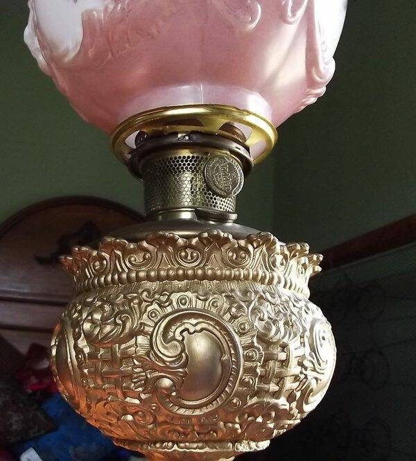 Pillar oil lamp. Tall pillar lamp with gone with the wind globe. In original condition.