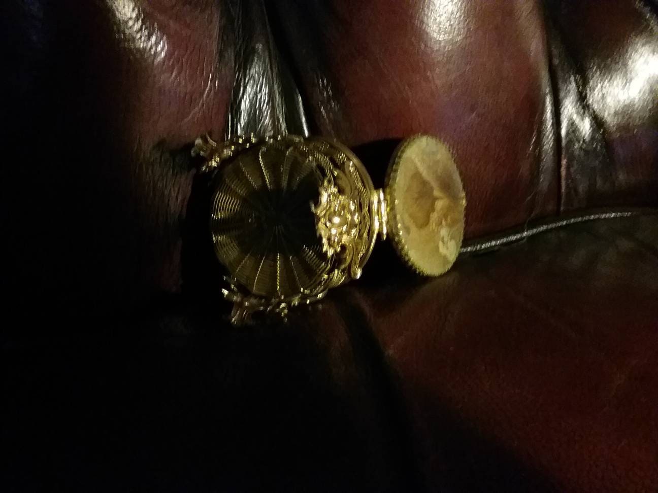 Beirdemeire casket box. Coverlid set with pressed flowers pique prong set. Footed casket box with woven metalwork. Measures 2" x 2".