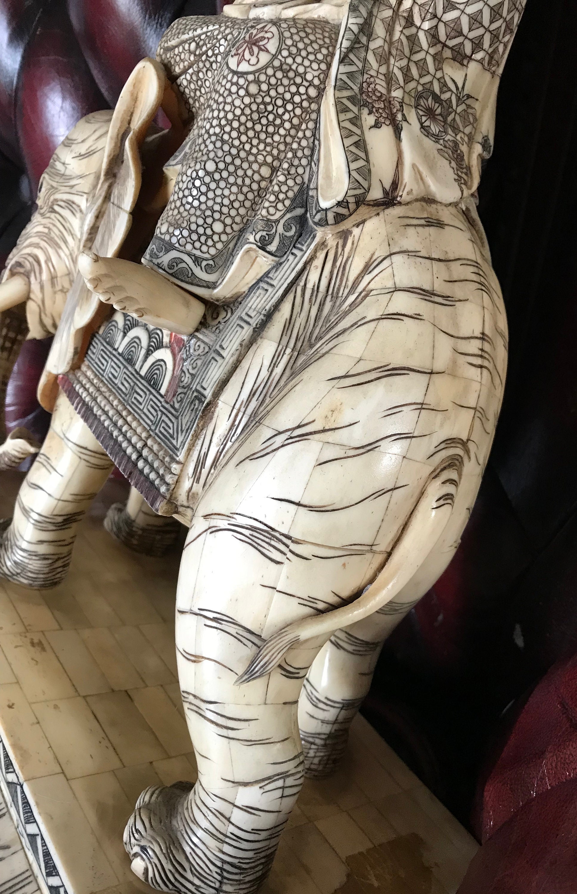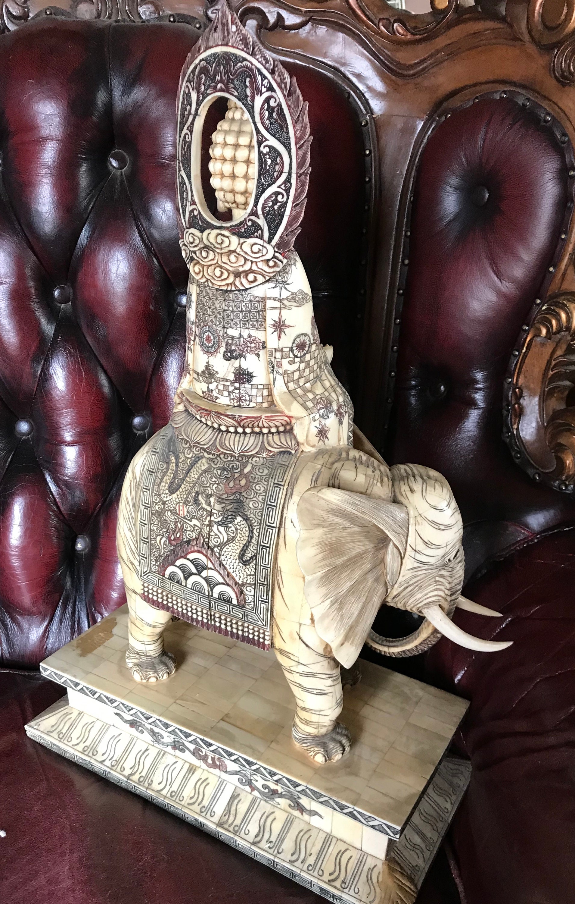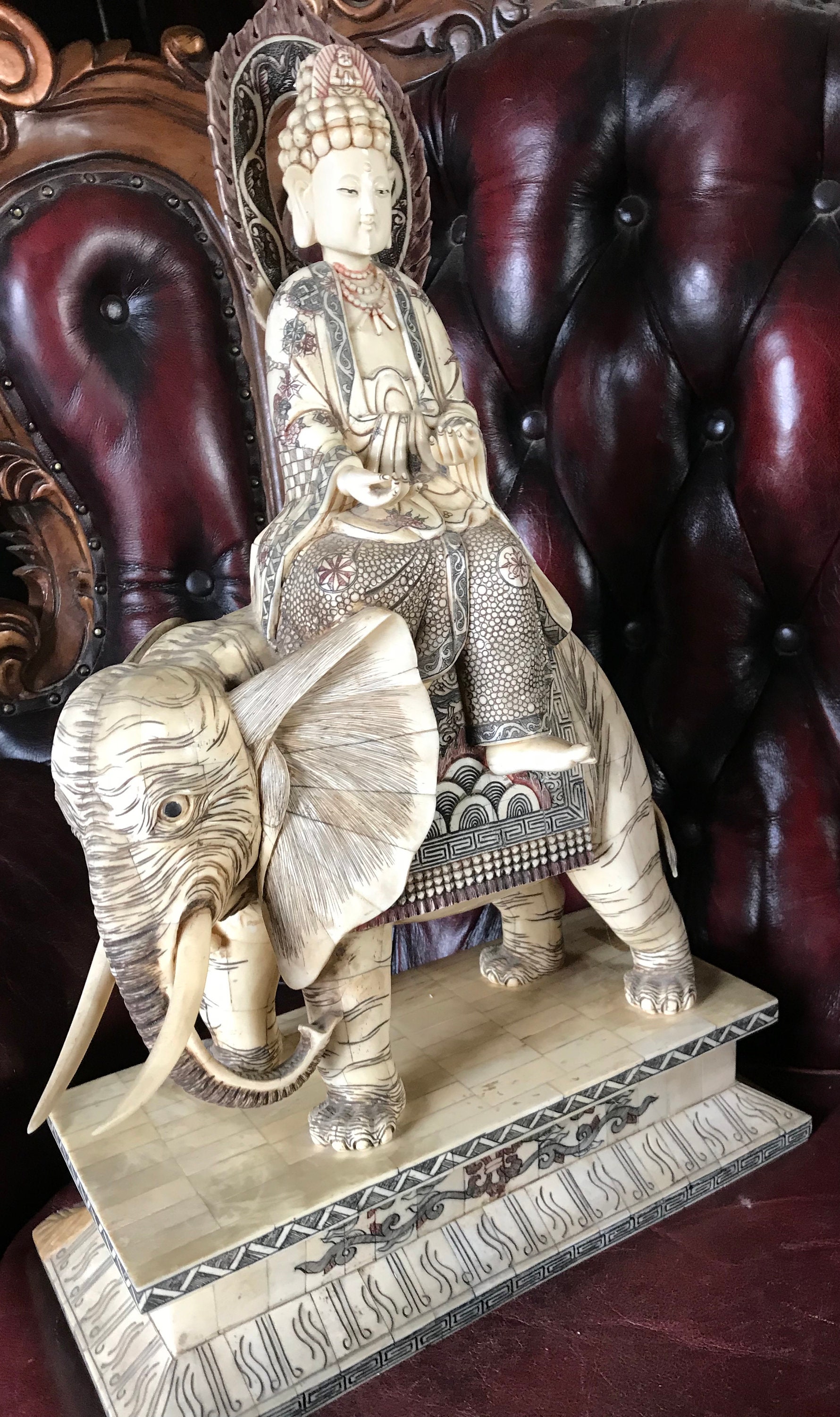 Antique Bone Chinese Fengshui Elephant, Sakyamuni Buda Statue Figure