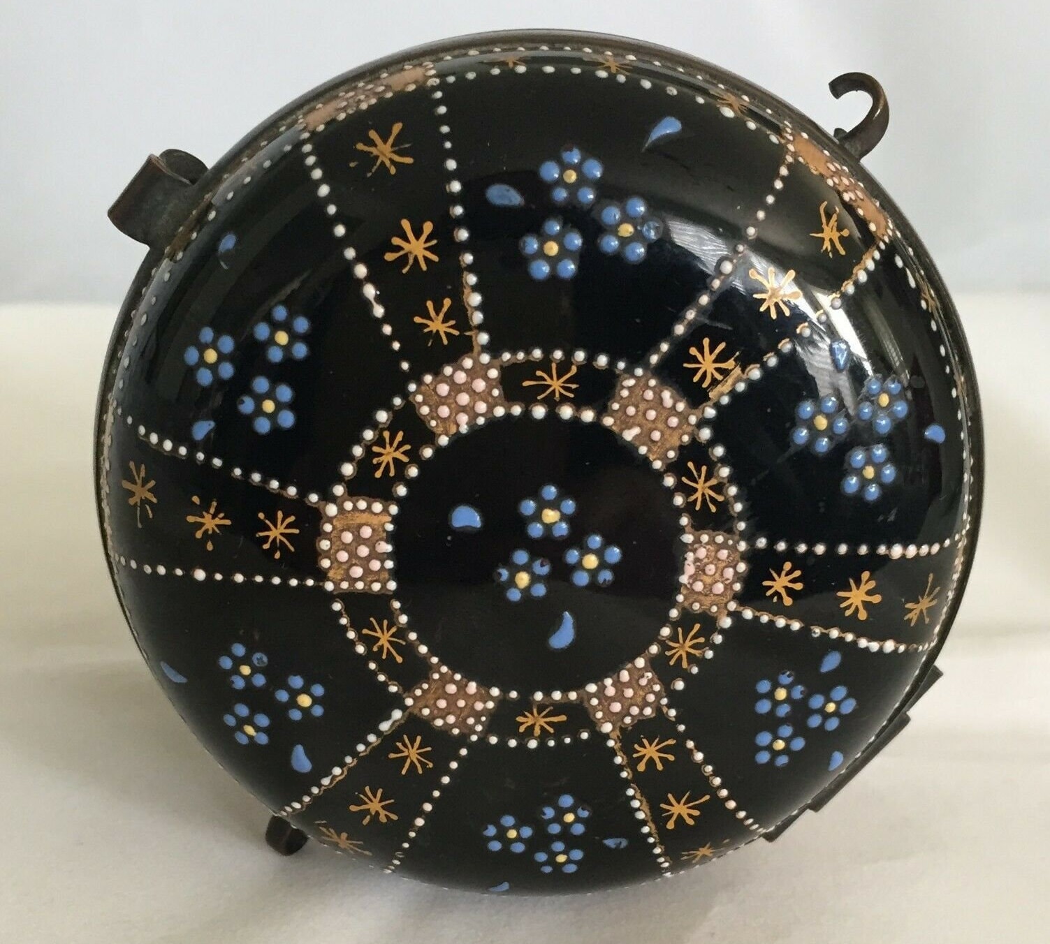Decorated with lovely blue white enameling and gold stars in art deco style.