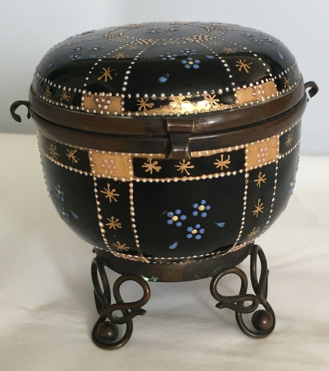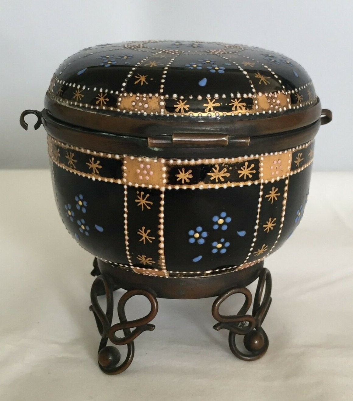 Brass / bronze mounted with "S" hinge and scroll edornate feet.
