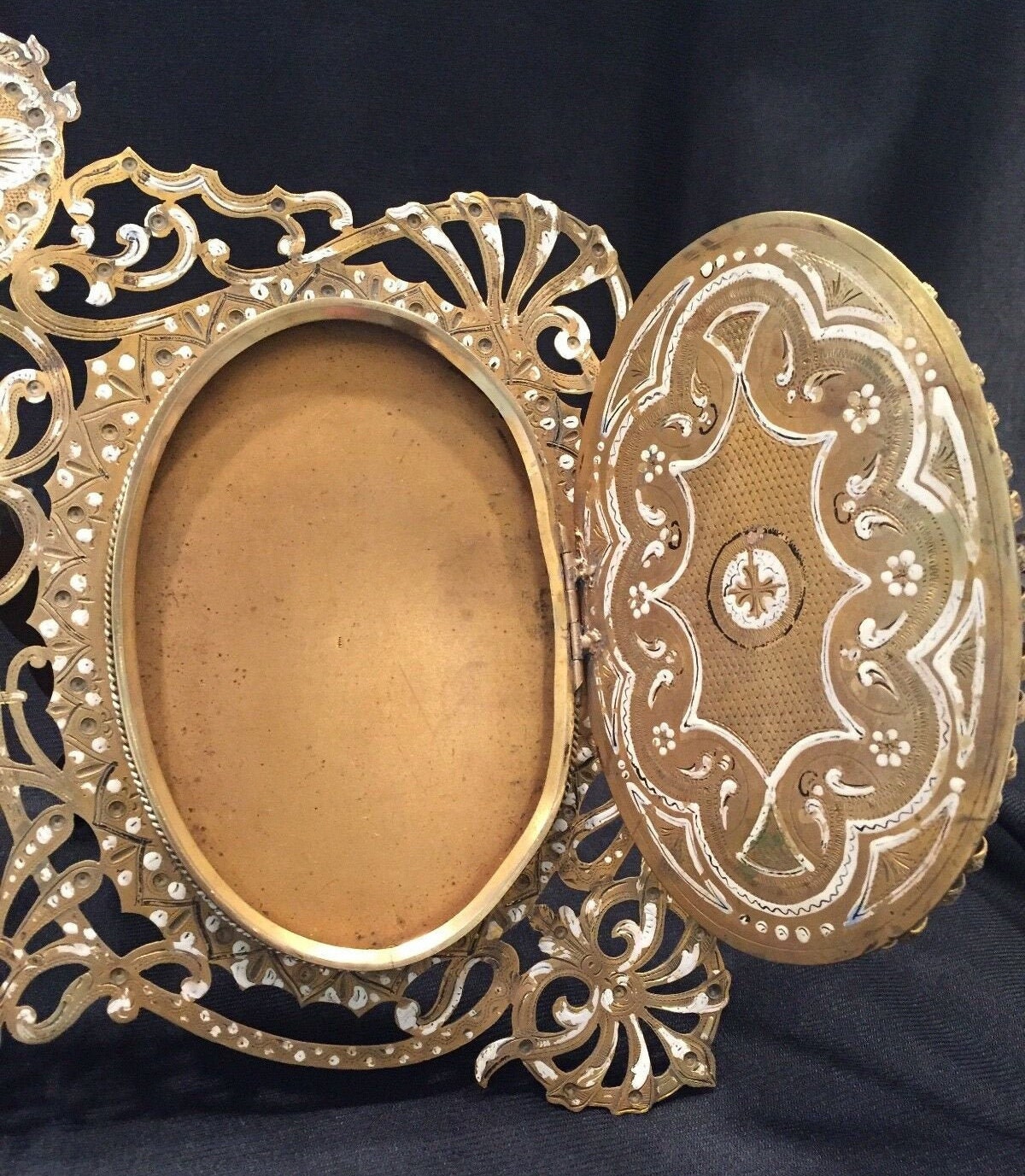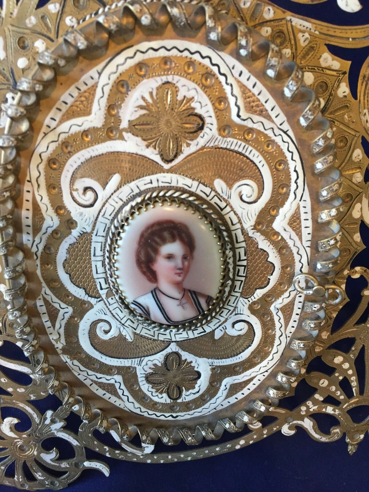 Antique Czech Austro Hungarian Enamel Portrait Plaque Easel Picture Frame